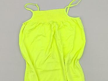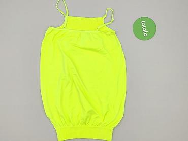 Bluzka damska bez rękawów w kolorze limonkowym/neonowej żółci. - Fason: luźny, lekko wydłużony tył, zaokrąglone brzegi - Dekolt: w serek, bogato zdobiony ażurową koronką i haftem - Tkanina: przewi...