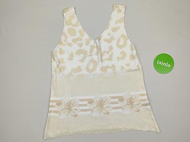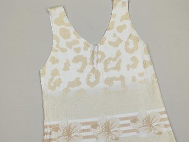 Bluzka damska bez rękawów “Made in Italy” w kolorze ecru/kremowym. - Delikatna, lekko prześwitująca dzianina o subtelnym, melanżowym splocie - Tył z głębokim dekoltem w kształcie litery V, wypełni...