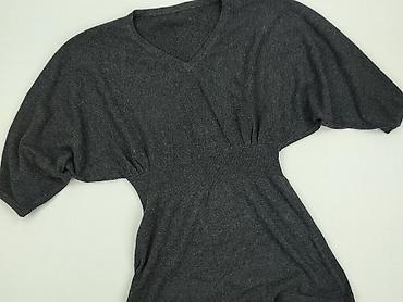 Szara tunika/bluzka damska z wiązaniem w pasie - Fason: luźna tunika o prostym kroju, delikatnie zwężana wiązanym paskiem z boku (czarny materiałowy pasek wszyty w szwy boczne) - Rękaw: krótki, ki...