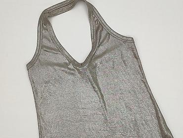 Damska bluzka bez rękawów – srebrna, z połyskiem - Krój: dopasowany, taliowany, bez rękawów, okrągły dekolt - Przód: tkanina z efektem brokatu/metalicznej nitki, gęsto zdobiona połyskującymi, okrą...
