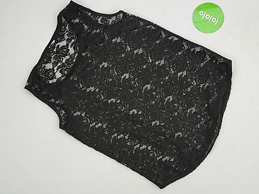 Bluzka damska RESERVED, rozmiar S - Kolor: czarny - Materiał: lekka, półtransparentna siateczka/koronka z pionowymi pasami i delikatnym, kwiatowym wzorem - Krój: prosty, lekko luźny - Rękaw: krótk...