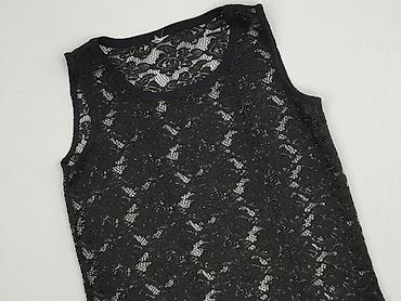 Damska bluzka bez rękawów w kolorze czarnym, o dopasowanym kroju. Przód i ramiona wykonane z koronkowej tkaniny o ażurowym, kwiatowym wzorze; tył z gładkiego, elastycznego materiału. Okrągły dekolt...Rozmiar: