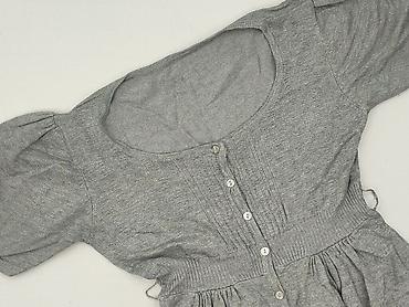 Szara damska bluzka/sweterkowa tunika z długim rękawem. - Materiał: dzianina melanżowa w odcieniach szarości (miękka, elastyczna). - Krój: lekko dopasowany, zaokrąglony dekolt. - Dwie dekorac...