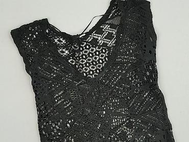 Bluzka damska RESERVED, rozmiar S - Kolor: czarny - Materiał: lekka, półtransparentna siateczka/koronka z pionowymi pasami i delikatnym, kwiatowym wzorem - Krój: prosty, lekko luźny - Rękaw: krótk...