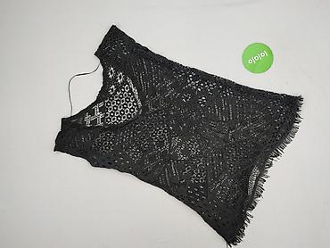 Czarna bluzka damska z ażurowym wzorem - Krój: prosty, lekko luźny, bez rękawów (cap sleeves) - Dekolt: głęboki w kształcie litery V z przodu i z tyłu - Materiał: miękka, elastyczna dzianina z wyr...