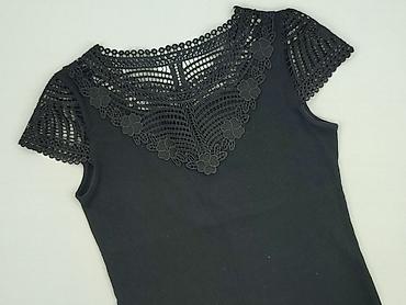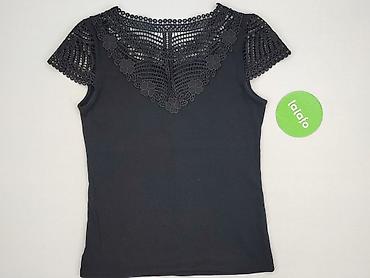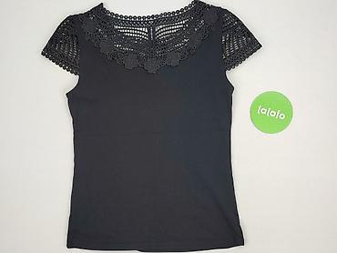 Czarna damska bluzka House, rozmiar M. - Fason: luźny T‑shirt z okrągłym dekoltem - Rękawy: krótkie, ażurowe/koronkowe wstawkami na ramionach i na całej długości rękawów - Materiał: 65% poliester,...