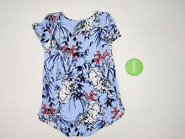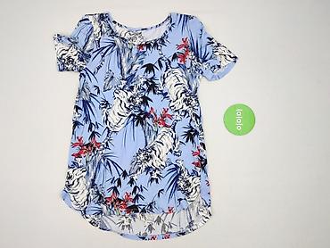 Bluzka damska STYLE LONDON, rozmiar S. - Krój: luźny, z krótkim szerokim rękawem. - Dekolt: typu V z małą łezką i stójką przy szyi. - Zapięcie: guziki z przodu (częściowo kryte). - Wzór: tropikaln...