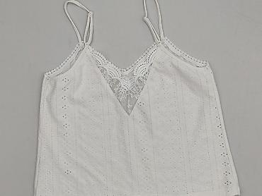 Biała damska bluzka na ramiączkach z koronkową wstawką - Krój: top/camisole na cienkich ramiączkach - Dekolt: V-neck z przodu, głębszy V na plecach - Detal: dekoracyjna, ażurowa wstawka koronkowa ...