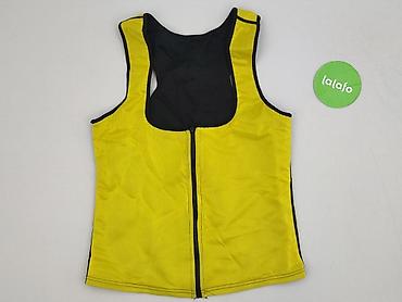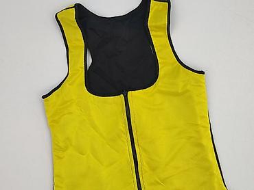 Top damski na ramiączkach, żółty. - Fason: dopasowany top z elastycznej, marszczonej tkaniny (efekt „crinkle/szmizjerka”) - Dekolt: z przodu i z tyłu ozdobne kółko łączące szerokie ramiączka -...