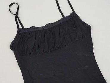 Czarna bluzka/top na ramiączkach - Krój: bez rękawów, szerokie, skręcane ramiączka; marszczona listwa przy dekolcie - Dekolt: łódkowy/opadający na ramiona - Materiał: 95% bawełna, 5% lycra (elasty...