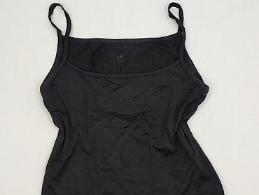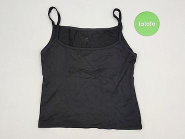 Czarny top na ramiączkach dla kobiety - Klasyczny, gładki top bez wzorów - Miękki, elastyczny materiał – przyjemny w noszeniu, dobrze dopasowuje się do sylwetki - Szerokie ramiączka z ozdobnym skr...