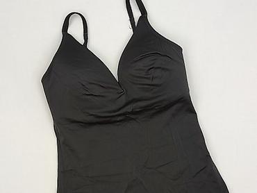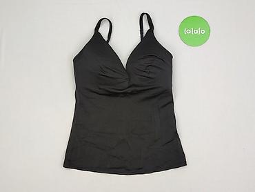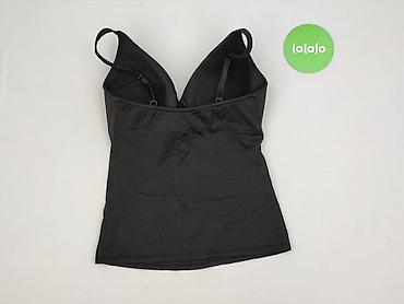 Czarny top damski na ramiączkach - Krój: dopasowany, z marszczeniem na środku biustu podkreślającym kształt - Ramiączka: cienkie, regulowane - Dekolt: w kształcie litery V - Długość: do bioder - M...Rozmiar:
