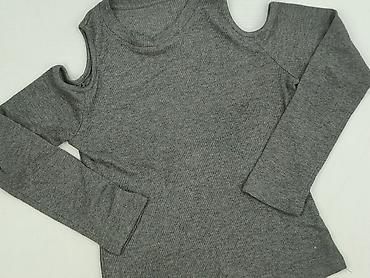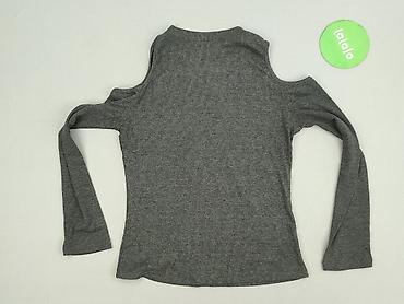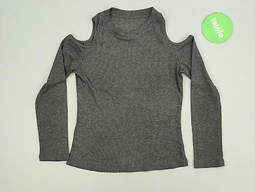 Dziewczęca bluzka z długim rękawem, szara, prążkowana, z modnymi wycięciami na ramionach (cold shoulder).