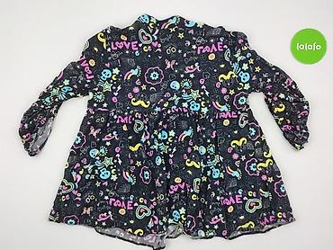Sukienka dziewczęca z długim rękawem, wzór graffiti/kolorowe doodle na czarnym tle (serca, gwiazdy, znaki peace, kwiaty, napisy LOVE). Lekka, miękko układająca się tkanina.