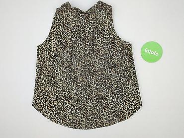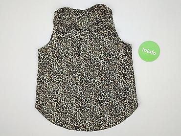 Bluzka bez rękawów z kołnierzykiem, zapięcie na guziki z przodu. Wzór: panterka/animal print w odcieniach czerni, szarości i bieli z drobnymi złotymi akcentami. Tkanina lekka, lejąca. - Rozmiar: S...Stan: