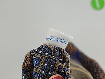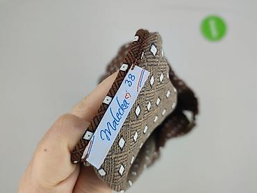 - Wzór: brązowa baza w drobne białe romby/kropki; na dole i na mankietach szerokie etniczne/geometryczne pasy w odcieniach granatu, brązu i beżu