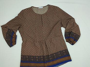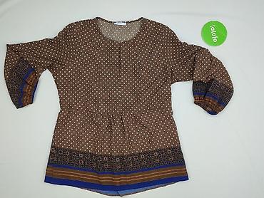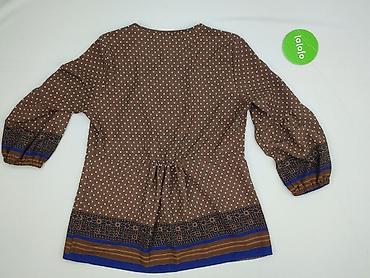 Bluzka damska z długim rękawem, rozmiar S. - Materiał: 100% poliester (metka na zdjęciu) - Kolor: odcienie karmelowo‑brązowe - Krój: klasyczny, okrągły dekolt, rękaw długi - Wzór: fotonadruk w sty...