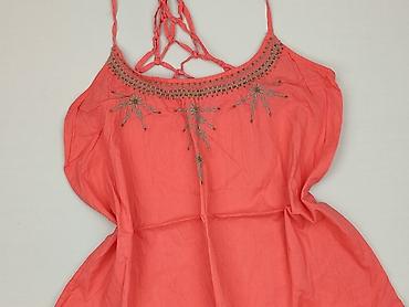 Bluzka bez rękawów dla kobiety - Kolor: koralowy - Krój: luźny, lekko zaokrąglony dół - Dekolt: głęboki w kształcie litery V, ozdobiony taśmą z drobnymi koralikami/błyszczącymi aplikacjami w srebr...