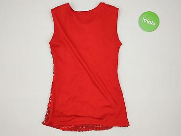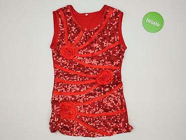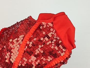 Czerwona bluzka z długim rękawem, materiał elastyczny. - Wzór: srebrne, mieniące się kropki/konfetti na całej powierzchni. - Dekolt: fantazyjny, wycięty w delikatne „fale” z przodu. - Fason: dop...