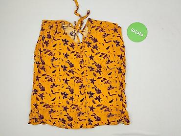 Żółta bluzka damska z dekoltem kopertowym i krótkim rękawem - Rozmiar: M (metka widoczna na zdjęciu) - Fason: taliowana, z wiązaniem z przodu pod biustem, podkreśla sylwetkę - Dekolt: w kształcie ...Rozmiar:
