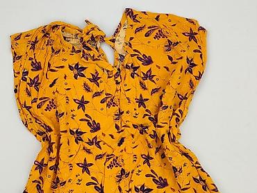 Żółta bluzka damska z krótkim rękawem - Krój: luźny, z lekkim wcięciem w talii i dekoracyjnym wiązaniem z przodu, dół lekko falowany/peplum - Dekolt: łódkowy - Rękawy: krótkie - Materiał: cienka, ...