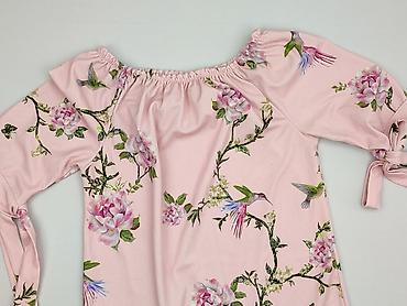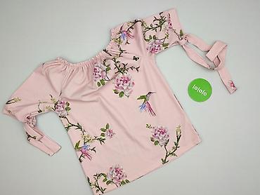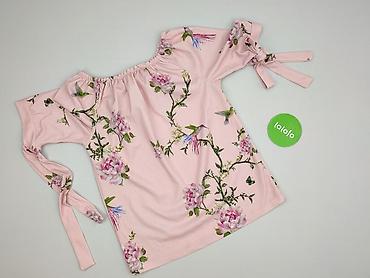 Bluzka damska w kwiaty, rozmiar S/M - Kolor: zgaszony róż z kwiatowym nadrukiem w odcieniach różu, bieli i brązu - Krój: luźniejszy, z elastycznym ściągaczem i falbaną na dole; rękawy długie z lek...