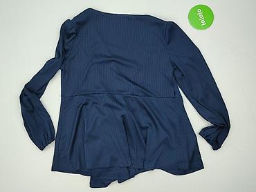 Bluzka damska z długim rękawem, granatowa - Krój: luźny, z miękkimi zakładkami z przodu - Dekolt: szeroki, zaokrąglony - Rękawy: długie, lekko bufiaste, zakończone mankietem - Dół: elastyczny ścią...