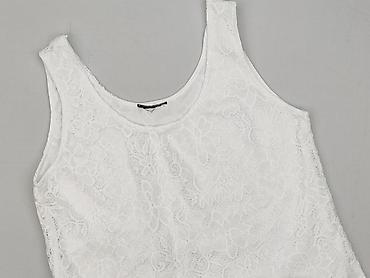 Biała koronkowa bluzka bez rękawów dla kobiet. - Krój: prosty, bez rękawów, okrągły dekolt - Tkanina: koronka z kwiatowym wzorem - Skład materiału: 80% bawełna, 20% nylon (na metce: 80% CO, 20% NY...