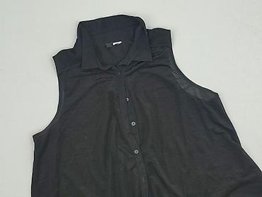 Czarna damska bluzka bez rękawów - Krój: luźny, lekko rozszerzany, z dekoltem w serek - Zapięcie: pełny rząd guzików z przodu - Kieszenie: dwie naszywane na piersi z klapką zapinaną na guzik - Tył...