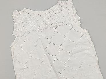 Biała, lekka bluzka bez rękawów dla kobiety. Przewiewna tkanina (cienka bawełna/bawełna z domieszką) z haftem angielskim w kwiatowe motywy na przodzie. Okrągły dekolt, delikatne marszczenia i piono...Rozmiar: