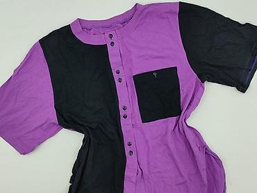 Bluzka damska Konfex z krótkim rękawem - Kolor: chabrowy/fioletowy - Materiał: 100% bawełna (metka) - Krój: lekko taliowany, zapinana na guziki z przodu - Dekolt: w kształcie litery V ze stójką - ...Stan: