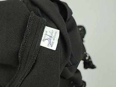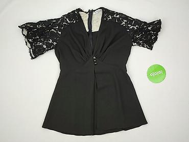 Czarna damska bluzka z krótkim rękawem, rozmiar S. - Fason: dopasowany, z głębszym dekoltem w kształcie serka z zakładką i lekkim marszczeniem na biuście - Rękawy: krótkie, wykończone subtelną kor...