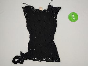 Czarna bluzka damska François Perrin Collection, rozmiar 40. - Dekolt zaokrąglony. - Rękaw 3/4. - Przód obficie zdobiony srebrnymi cekinami układającymi się w efekt ombré; tył gładki. - Materia...