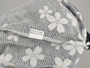 Bluzka damska z lekkiej, półprzezroczystej dzianiny w odcieniach szarości z roślinnym, drobnym wzorem. - Krój: luźny, tunikowy - Dekolt: okrągły z delikatnym marszczeniem i troczkiem do regulacji ...