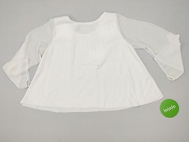 Biała bluzka z długim rękawem i koronkową wstawką na karczku. Model z falbaną biegnącą wokół ramion i klatki piersiowej, ze stójką oraz zapięciem na suwak z tyłu pod szyją. Materiał gładki, lekko e...