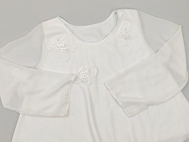 Biała koronkowa tunika/bluzka dla dziewczynki - Krój: odcinana w talii z rozkloszowanym dołem, długie bufiaste rękawy - Materiał: miękki ażurowy koronkowy wzór w kwiatowe/okrągłe motywy, miejscami...Rozmiar: