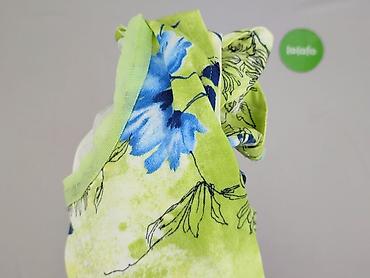 Damska bluzka w kwiaty - Krój: luźny, lekko wydłużony tył, dekolt w kształcie V - Rękaw: krótki, opadający (kimono/cap sleeves) - Wzór: drobne białe kwiaty na pastelowo-zielonym tle - Materiał: ci...