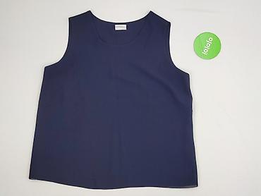 Granatowa damska bluzka bez rękawów - Krój: prosty, luźniejszy, z okrągłym dekoltem - Kolor: ciemny granat - Rozmiar z metki: 52 - Materiał: lekko elastyczna, gładka tkanina syntetyczna o delikatn...