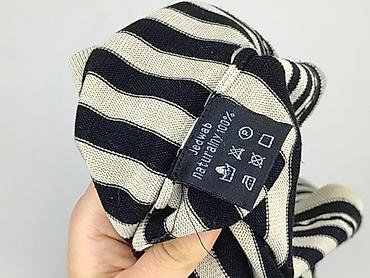 - Wzór: poziome paski w kolorach czarnym i beżowym; dekoracyjna ażurowa listwa przy dole i mankietach