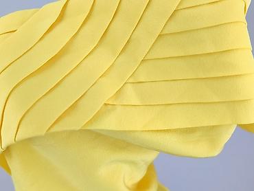 Żółta damska bluzka bez rękawów - Krój: luźny, kaskadowe/warstwowe panele z przodu i z tyłu, lekko wydłużony tył - Dekolt: okrągły z pionowym, dekoracyjnym rozcięciem z przodu - Materiał: 100% pol...