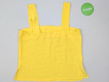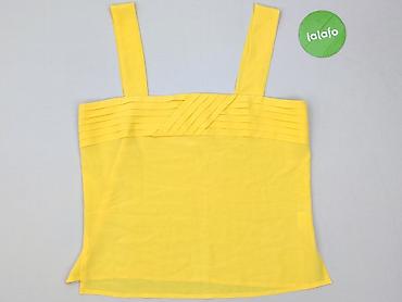 Żółta bluzka damska bez rękawów - Rozmiar z metki: 38 - Krój: luźny, lekko zaokrąglony dół, przedłużony tył, delikatnie opadające ramiona (cap sleeves) - Dekolt: w kształcie litery V - Materiał: c...