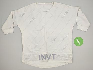 Biała bluzka damska Lakynka, rozmiar S/M - Krój: luźny, z obniżoną linią ramion; rękawy do łokcia z podwinięciem - Dekolt: kaptur/komin ze sznurkami do regulacji - Front: nadruk z napisem i aplika...