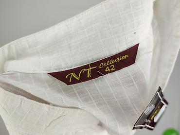 Biała bluzka damska Xlnt, rozmiar XL. - Krój: luźny, z krótkim rękawem typu cap. - Dekolt: w kształcie litery V z zakładką na środku. - Tył: delikatne zakładki pod kołnierzem dla lepszego układania...