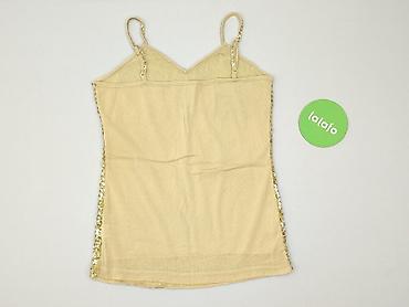 Bluzka damska RESERVED, rozmiar 36 (S) - Model bez rękawów, z okrągłym dekoltem - Przód w całości pokryty złotymi cekinami – intensywny połysk, idealny na wieczór i wyjścia - Tył gładki, beżowy, z...