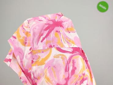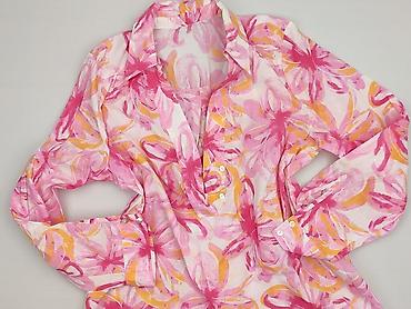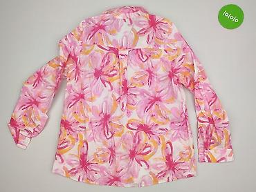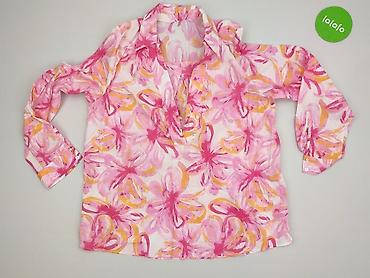Bluzka damska w kwiatowy wzór - Kolor: intensywny róż (fuksja) z wielobarwnym, roślinnym printem - Krój: luźny, lekko wydłużony tył; dekolt w serek z krótką listwą guzikową - Rękaw: do łokcia, z l...Stan: