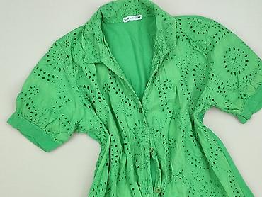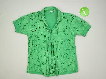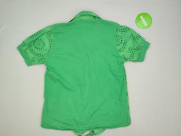 Bluzka damska XXL, jasnozielona (limonkowa), zapinana na guziki. - Fason: luźny, krótki rękaw - Kołnierzyk: ozdobny, z haftem roślinnym i ażurowymi wycięciami - Materiał: 50% poliester, 50% wiskoz...