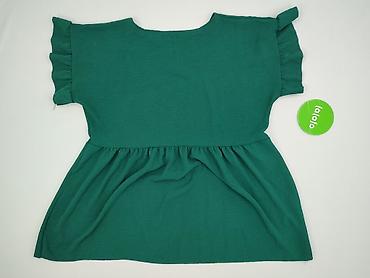 Bluzka damska w kolorze zielonym - Fason: luźny, z krótkim rękawem typu kimono - Dekolt: okrągły, ozdobiony delikatną lamówką - Zapięcie: mały guzik z pętelką z tyłu pod szyją - Materiał: cienka, ...