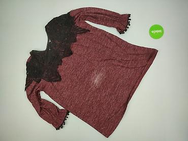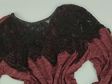 Bluzka damska z długim rękawem, burgundowa z czarną koronką - Fason: dopasowany, z okrągłym dekoltem - Ozdoby: szeroki, dekoracyjny karczek z czarnej koronki na przodzie i ramionach; mankiety z fa...
