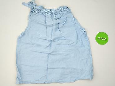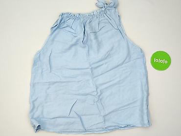 Bluzka damska bez rękawów - Kolor: jasny błękit z ciemnogranatową lamówką przy dekolcie i pachach - Rozmiar: L (EU L) - Fason: luźna, lekko marszczona z przodu, dekolt w kształcie litery V z małym...