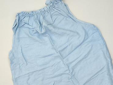 Damska bluzka bez rękawów - Kolor: odcienie niebieskiego - Wzór: drobne kwiatki/ciapki - Krój: luźny, zaokrąglony dół, niewielkie marszczenie z tyłu - Dekolt: w serek z krótką listwą guzikową (3 g...Stan: